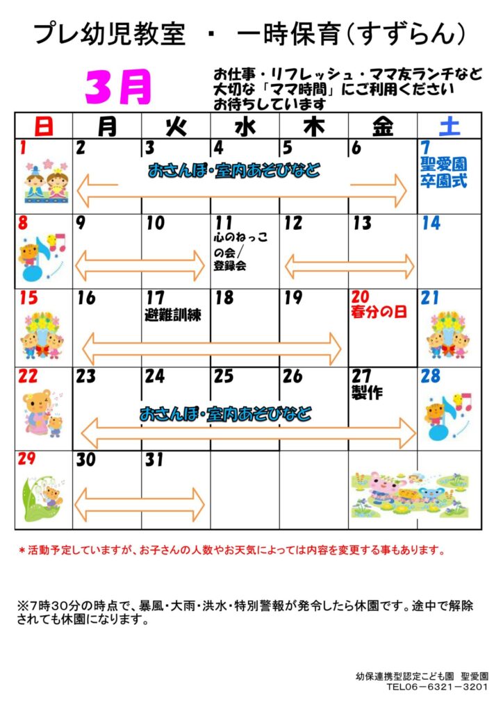 3月 プレ幼児教室・一時保育(すずらん)