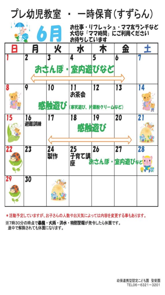 6月 プレ幼児教室・一時保育(すずらん)