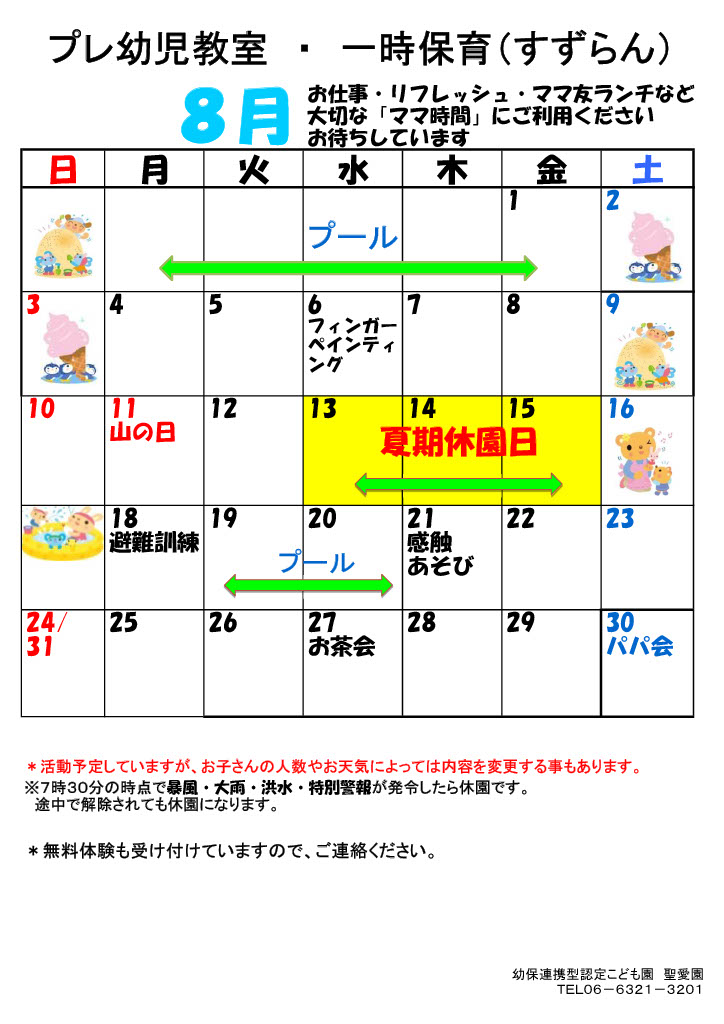 8月 プレ幼児教室・一時保育(すずらん)PDFダウンロード