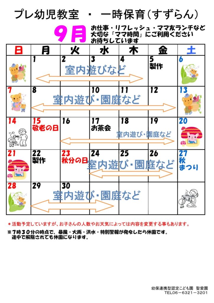 9月 プレ幼児教室・一時保育(すずらん)