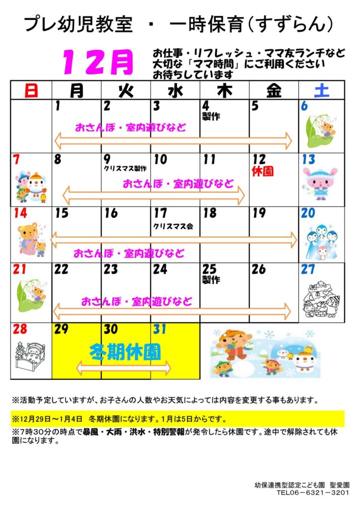 12月 プレ幼児教室・一時保育(すずらん)