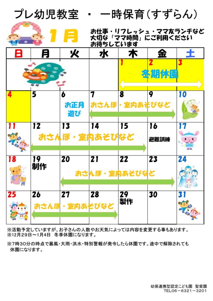 1月 プレ幼児教室・一時保育(すずらん)