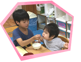 ひとつのクラスに異年齢児の子どもたちが、きょうだいのように関わり合い生活を共にしています。