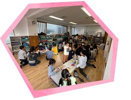 聖愛園のたてわり保育(異年齢クラス保育)を引き継ぎ、「障がい児」共同保育の理念をもとに、障がいのある子もない子も共に育ち合う仲間作り・仲間育ての保育を行います。